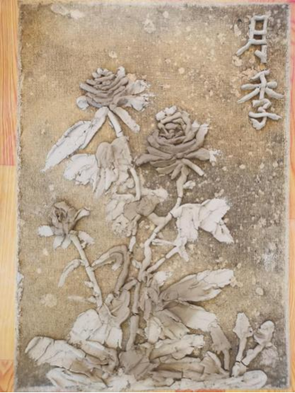 有的员工在雷老师的指导下做泥板塑,一步一步,认真扎实,构思创作稿,从校园里挖取泥土, 和泥,上板,调整,完成作品。