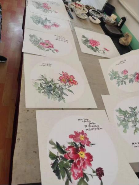 有的员工选择了跟随雷老师的示范,进行国画花鸟画方式的写生。雷老师在《校园月季花》开课之前,首先对景写生,采用国画的不同技法风格,完 成了10幅写生稿,作为课堂造型表现的示范稿。本节课的主要示范技法就是国画花鸟写生。