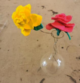 员工作业类型很丰富,总结起来,有平面造型的国画、铅笔线描等,立体造型的彩色超轻黏土花束、泥板塑等。