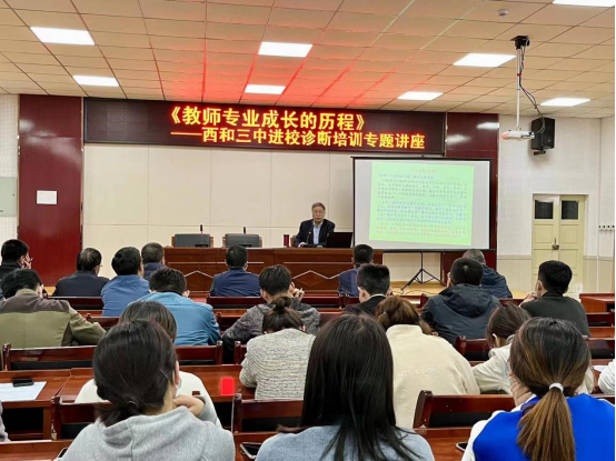 在授课评课之余,天水一中教师高级教师,甘肃省骨干教师,天水市领军人才,天水市教学能手石志学老师结合自身资深的教学经历和体验,给大家做了以《教师专业成长的历程》为题的主题报告,启迪教师要积极适应环境,激活发展潜能,勤于思考,用心做教育,用爱为人师,给参训学员带来了一场精神盛宴。