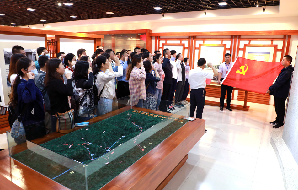 在纪念馆内,全体党员高举右手,在鲜红的党旗下重温入党誓词,再一次接受心灵的洗礼,表达不忘初心、牢记使命,继续为党的事业奋斗终生的决心。随后,全体党员参观了纪念馆,仔细聆听讲解员对每一张照片、每一件文物的讲述,体会那段可歌可泣的壮丽史诗,感悟长征精神,传承红色基因,锤炼党性修养。